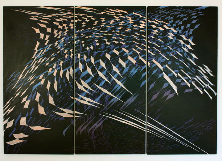 Splish Splash: 27"x39 1/2"x3/4" acrylic on 3 wood panels